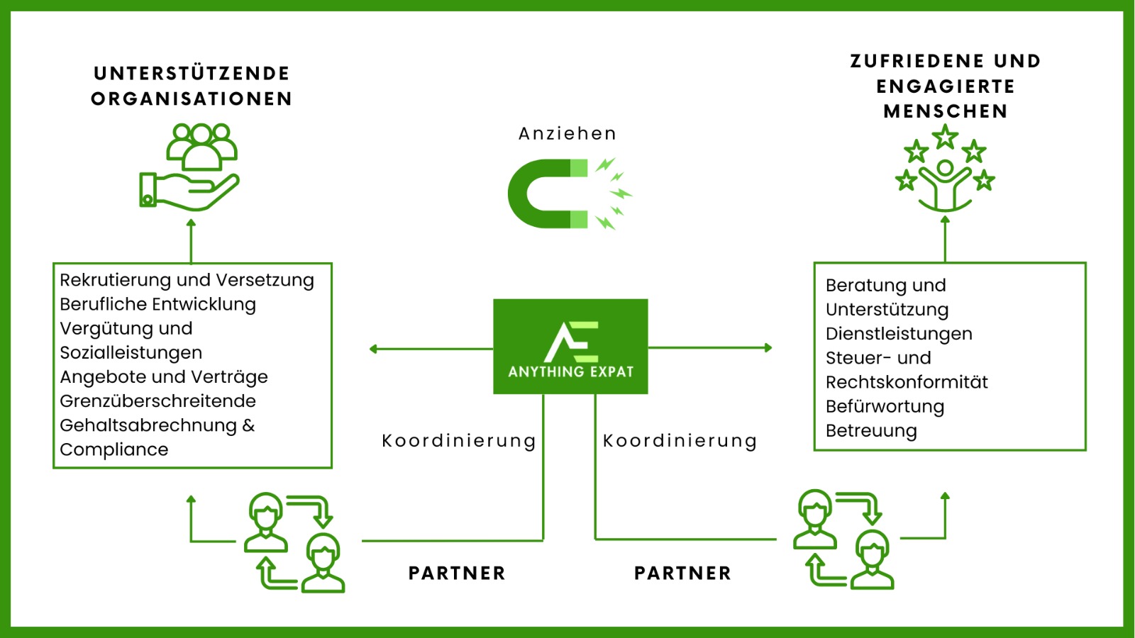 AnythingExpat bietet ein umfassendes Angebot an Beratung und Dienstleistungen im Bereich der globalen Mobilität. Wir wissen, was gebraucht wird, wann es gebraucht wird und wie man es am besten umsetzen kann. Was unsere Kunden am meisten an uns schätzen, ist unsere „Can-Do“-Haltung und unser proaktiver Ansatz. Wir sind in der Lage, potenzielle Probleme zu erkennen, bevor sie Realität werden und entsprechend zu handeln.